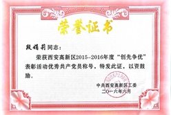 我公司段娟莉同志榮獲高新區(qū)優(yōu)秀共產(chǎn)黨員稱號(hào)
