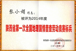 張小娟同志榮獲2014年度陜西省第一次全國(guó)地理國(guó)情普查 勞動(dòng)競(jìng)賽標(biāo)兵稱號(hào)
