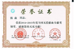 祝賀我公司強(qiáng)焱同志榮獲“2014-2015年度全國(guó)無(wú)償獻(xiàn)血奉獻(xiàn)獎(jiǎng)”銅獎(jiǎng)稱號(hào)